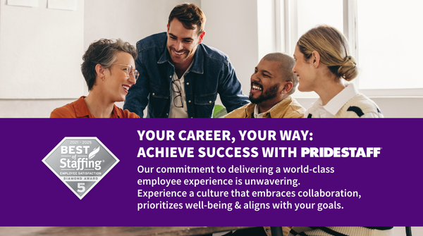 Based entirely on ratings provided by their employees, ClearlyRated’s Best of Staffing® Employee Award winners have proven to be industry leaders in delivering a world-class experience to their internal employees. To participate in the Best of Staffing award program for employee satisfaction, a firm must invite feedback from 100% of its internal staff on key metrics, such as their overall experience of working at the firm, engagement, opportunities for career growth, and organizational culture. PrideStaff received satisfaction scores of 9 or 10 out of 10 from over 80% of internal employees.