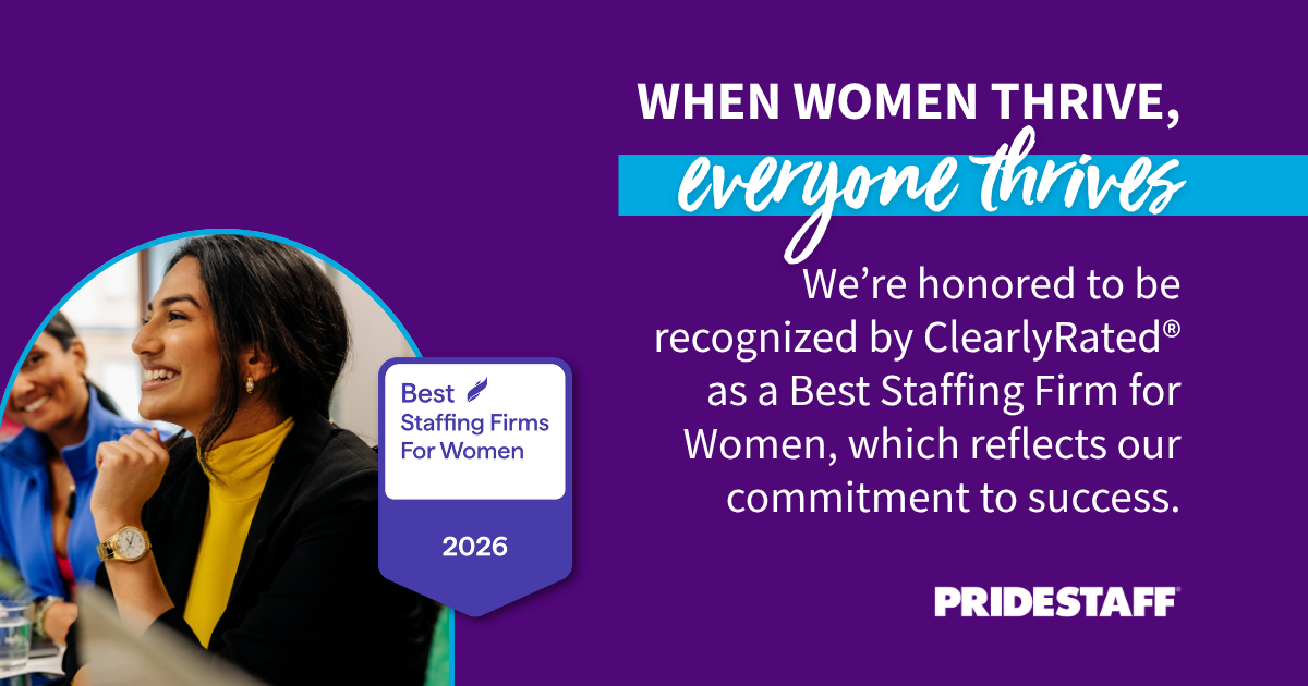 PrideStaff, a nationally franchised staffing organization, has been named to ClearlyRated’s® Best Staffing Firms for Women list for the fourth consecutive year. The recognition highlights staffing firms that demonstrate exceptional commitment to supporting and advancing women in the workforce.