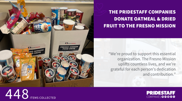 The PrideStaff Companies recently made a significant impact on the Fresno community with an Oatmeal & Dried Fruit Drive that directly benefited the Fresno Mission.